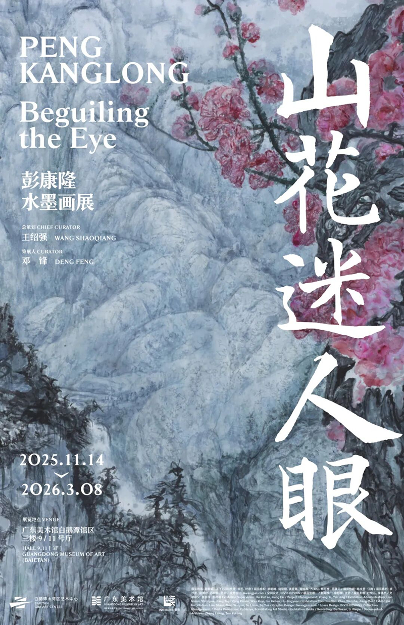 The Guangdong Museum of Art will present Peng Kanglong: Beguiling the Eye, the largest solo exhibition to date by the acclaimed contemporary ink artist Peng Kanglong (b. 1962, Hualien, Taiwan). Held at the museum's Baietan Venue, the exhibition brings together nearly 90 works spanning twenty-five years of Peng's artistic career, offering audiences an immersive visual experience that traces his integration of landscape and flower painting into a singular contemporary idiom. Organized by the Guangdong Museum of Art, with support from INKstudio, the exhibition is led by Wang Shaoqiang, the museum's director, and curated by Deng Feng, research fellow at the National Art Museum of China.