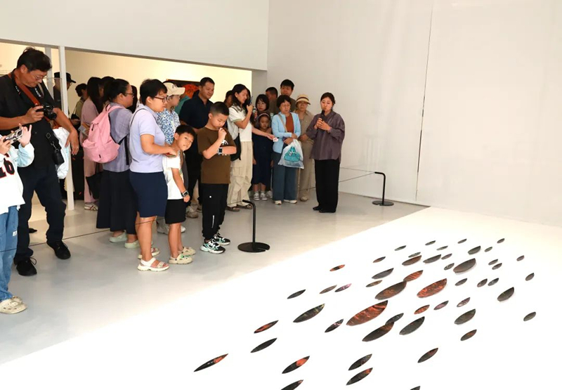 开展当日,本次展览的学术主持皮道坚携手五位艺术家唐明修、谢震、张温帙、郭小一、施鹏程亲临现场导览,观众云集,气氛热烈;多家主流媒体同步报道,聚焦漆艺新声。
