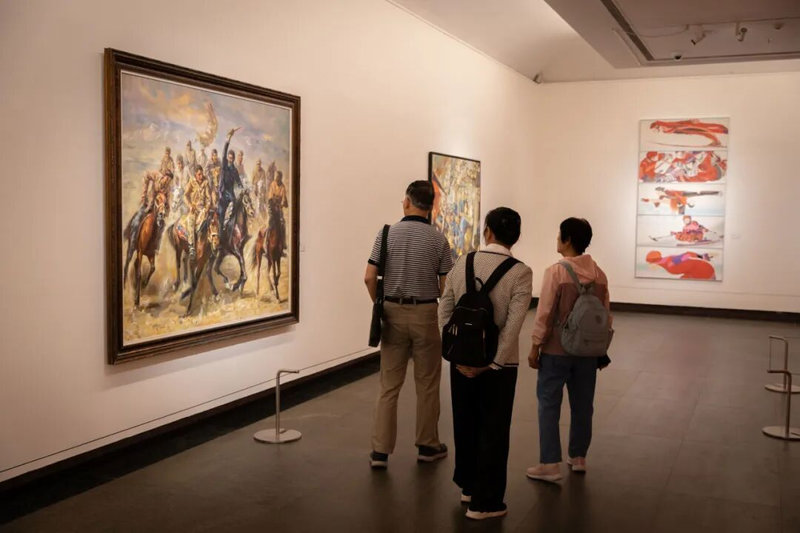 本馆,以“力与美的诗学”为主题,共展出来自中国体育博物馆、中国美术家协会约150件/组优秀作品,涵盖了中国画、油画、版画、雕塑、水彩、综合材料等多种艺术类型,以“五重叙事”构建观展体验,从形体的原始力量到精神的升华超越,为观众铺就一条通向体育艺术深层境界的探索路径。