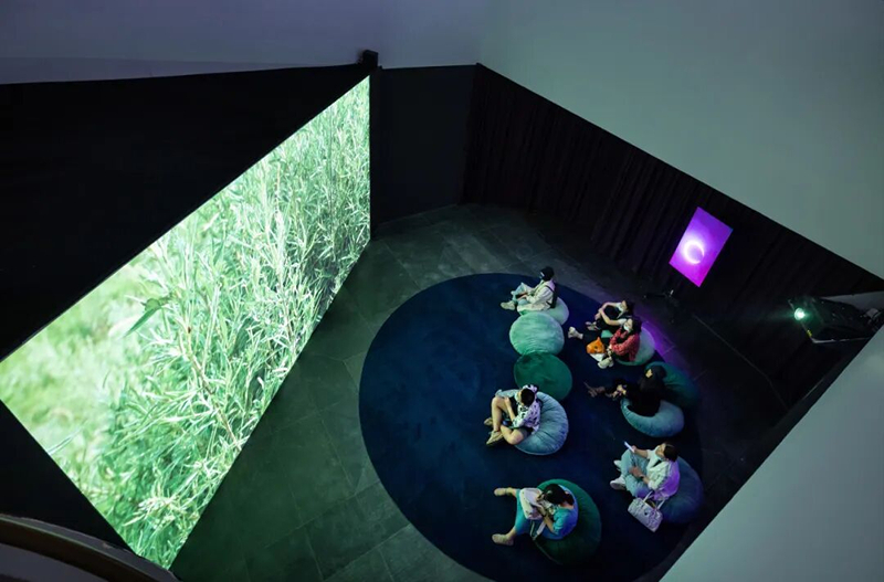 馆长王绍强,策展人何伊宁,艺术家蔡东东、丘、龙盼,一同进入“感知生态学”的讨论现场,在新的媒介环境中重新思考艺术、社会与感知的关系。