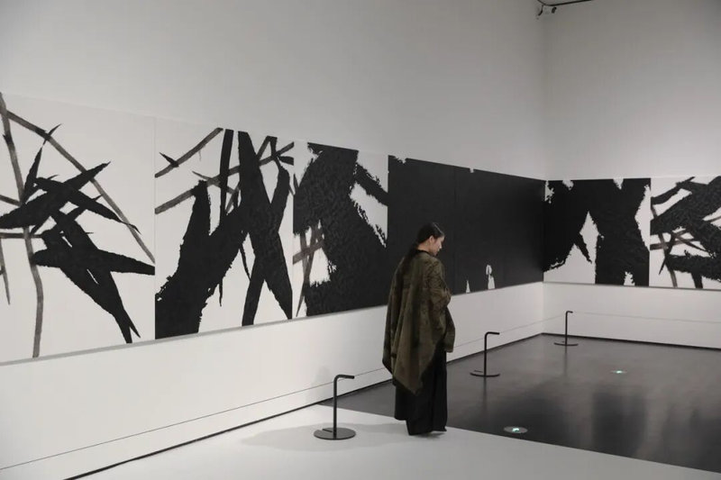 本次展览中,《缓慢之作》《瞬间之作》《镜花水月》等作品,清晰呈现了他如何以东方性绘画回应现代视觉课题。在《缓慢之作》系列中,他以水墨书写的速度感捕捉竹之形神,却在画面空间的经营中注入“慢”的哲思——看似迅疾的笔触背后,是时间在空间中的沉淀与延展;《瞬间之作》则以油画为媒介,在浓郁的色彩层积中探索“黑与白”“虚与实”的东方美学命题;而《镜花水月》更以综合材料构建起一种跨文化的视觉语法,在画面结构上实现了东西方空间观念的兼容并蓄。这种“快与慢”“动与静”“墨与色”的辩证关系,不仅呼应了中国文人画“以书入画”的传统,也暗合了德国现代艺术中对空间与物质感的深刻关注。