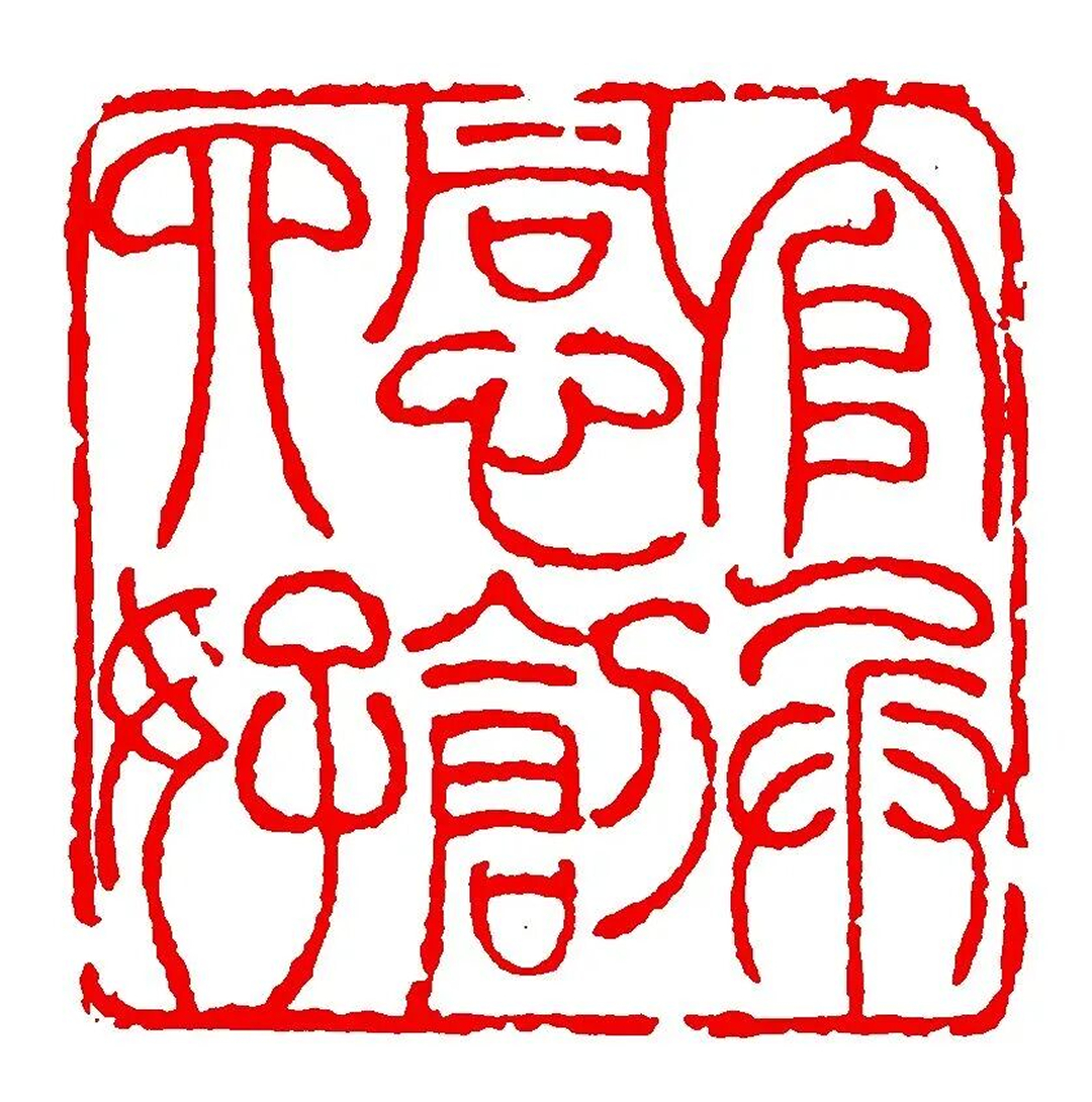 他以自已娴熟的小篆笔法,参以秦汉诏版、砖瓦、碑额文字,写出一路结体宽博疏落、笔势厚重多变的“草篆”体,这种草篆体妙在于变化错落中求得整体的平衡统一,而不斤斤于一字一画的刻板的比例对称,使作为造型对象的篆书大大拓展了结体、笔势上的自由度。入印文字的这种变革,不仅强化了他的印章字法的虚实对比,而且为变形夸张提供了极大的余地,许多看来平实的文字通过韩天衡的匠意经营,呈现顾盼有致,意趣横生的姿态,极富形象性和幽默感。