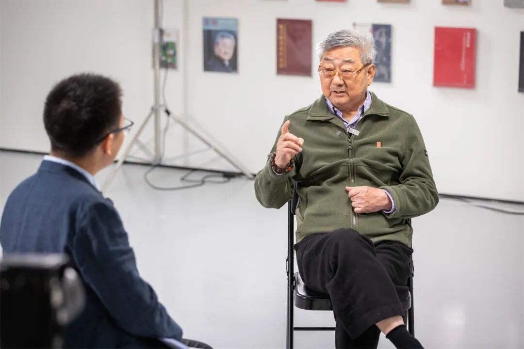 3月25日下午,韩天衡先生亲临展厅,对布展工作进行指导,并接受媒体专访。