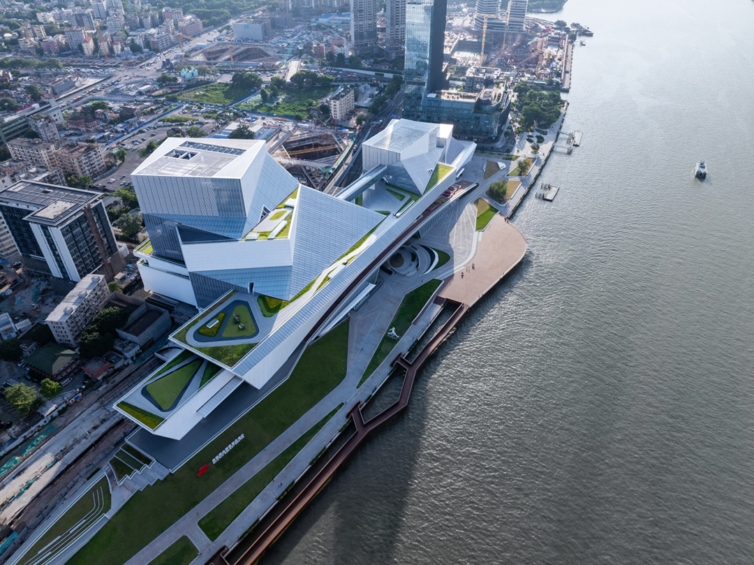 白鹅潭大湾区艺术中心位于广东省广州市荔湾区白鹅潭畔三江交汇处,是集