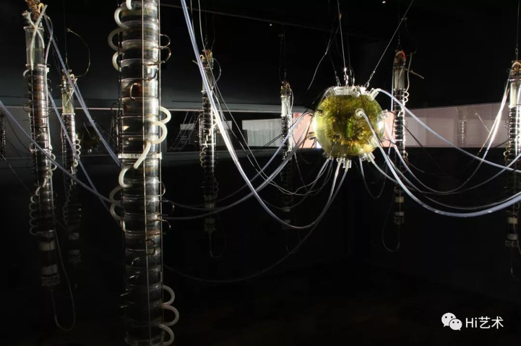 在“叠加:数字中的艺术”单元,长久以来对艺术和科技之间关系进行探究的ZKM丨德国卡尔斯鲁厄艺术与媒体中心除了带来最开始展墙上的《数字代码编年史》,还有将人的镜像转化为数字数据体及工业可读代码的《YOU:R:CODE》。在“同类演化”单元,阿恩·亨德里克斯带来“不可思议的收缩人”项目;玛丽·卡耶和阿维德·詹斯制作了几个自己会制作饮料售卖给人类的有机性机器人;夏洛特·贾维斯则设法利用新的生物信息学技术,将一段音乐录音编码存储在DNA里,然后让DNA悬浮在肥皂溶液中,充满整个展厅。在“机器不孤单”单元,托马斯·萨拉切诺以影像呈现了一个完全由太阳能驱动的飞行器,不需要任何矿物燃料;吉尔伯托·伊斯帕扎则利用废水变成电、变成能量。