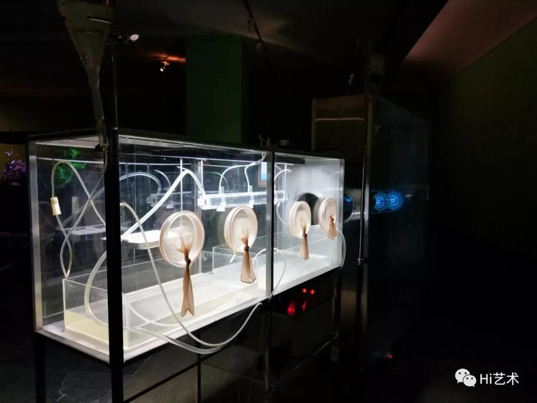 玛丽·卡耶(法国)&阿维德·詹斯(荷兰) 《SAM2》 钢材、PET(聚对苯二甲酸乙二醇酯)、电子产品、Scoby(细菌、酵母共生培养物) 150×80×80cm 2017,“同类演化”单元