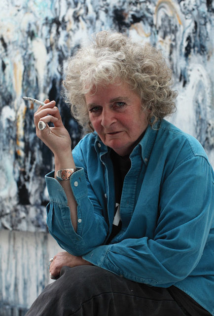 这位 73 岁的传奇女艺术家几十年来的形象保持一致:爱因斯坦式的爆炸卷发;手里夹着支香烟——戒烟的五年间,会用一支塑料假烟代替;直视镜头,脸上没有笑容。坐在大厅,顶着一头灰白色卷发,你一眼就会发现她。