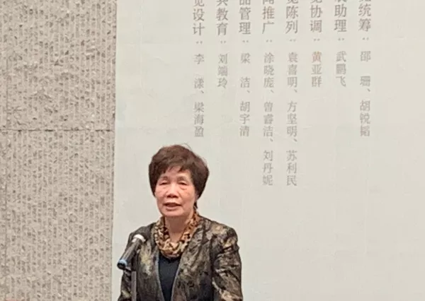 馆长王绍强,广东省文史研究馆馆长张小兰,本次展览学术主持梁江,艺术家郭莽园先后致辞发言。随后,郭莽园捐赠作品《仪明容部之一》,王绍强馆长颁发捐赠证书。最后,由广东省委副秘书长、宣传部副部长王桂科和广东省文化和旅游厅副厅长张奕民共同鸣锣宣布展览开幕。