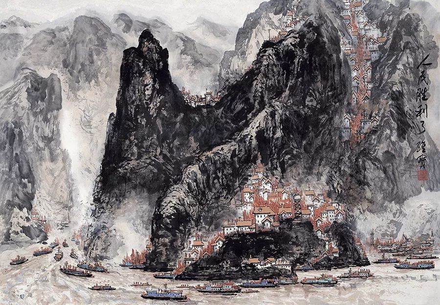 1976年,王维宝创作的《人民胜利了》表现的是伟大历史时刻万众欢腾的场面。它的重要性在于用山水画的形式来表现重大政治题材,这在此前中国画创作中并不常见。作品一经问世,就被全国各地的报纸杂志竞相刊登。作品打动观众的并不只是纯熟精妙的笔墨语言,更是一种豁然开朗的具体心境的体现。