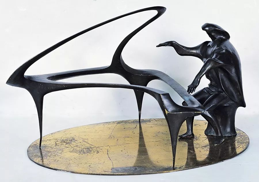 中国现代雕塑发轫于上个世纪二十年代初。梁明诚作为中国现当代雕塑第三代的杰出代表,在承接前辈现实主义的余韵,续写理想主义政治性主题创作之后,作为中国改革开放后第一批雕塑专业的留学生,于1980年至1982年由文化部选派赴意大利进修两年。在中西观念的交融碰撞中,进一步了解西方的艺术观念,置换了全新的艺术视野。作品《钢琴》正是他的雕塑风格由写实向写意转变的经典力作。钢琴的轮廓被抽象化为自由奔放的线性闭合形体,这件具有前卫意识的作品,引领新风,启示并助兴九十年代后中国当代雕塑各种新观念的异彩纷呈,与同代人的众多作品一起,确立了中国当代雕塑观念转折的重要路标地位。