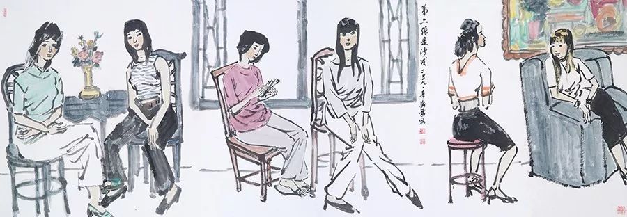 钟耕略曾评论道:“刘斯奋不斤斤于严谨的传统中国画的笔墨线条,使他能自由随意地绘出他对现代都市生活的感受。故此他的现代人物作品虽稍欠传统笔墨的历练,但却换来了活生生的意象,那既现实又写意的人物形象与观者产生共鸣,从而映照出作者热爱生活的真意。正因为刘斯奋的现代人物作品打破了传统笔墨的桎梏,在意念与境界上开拓了一片新天地。所以从他的作品中,可以找到更多与现代艺术相关的元素。譬如在《沙发》一画中,其粗犷率意的线条,以及构图运笔的感觉,几与野兽派的马蒂斯(Matisse)作品有共通的韵味。”