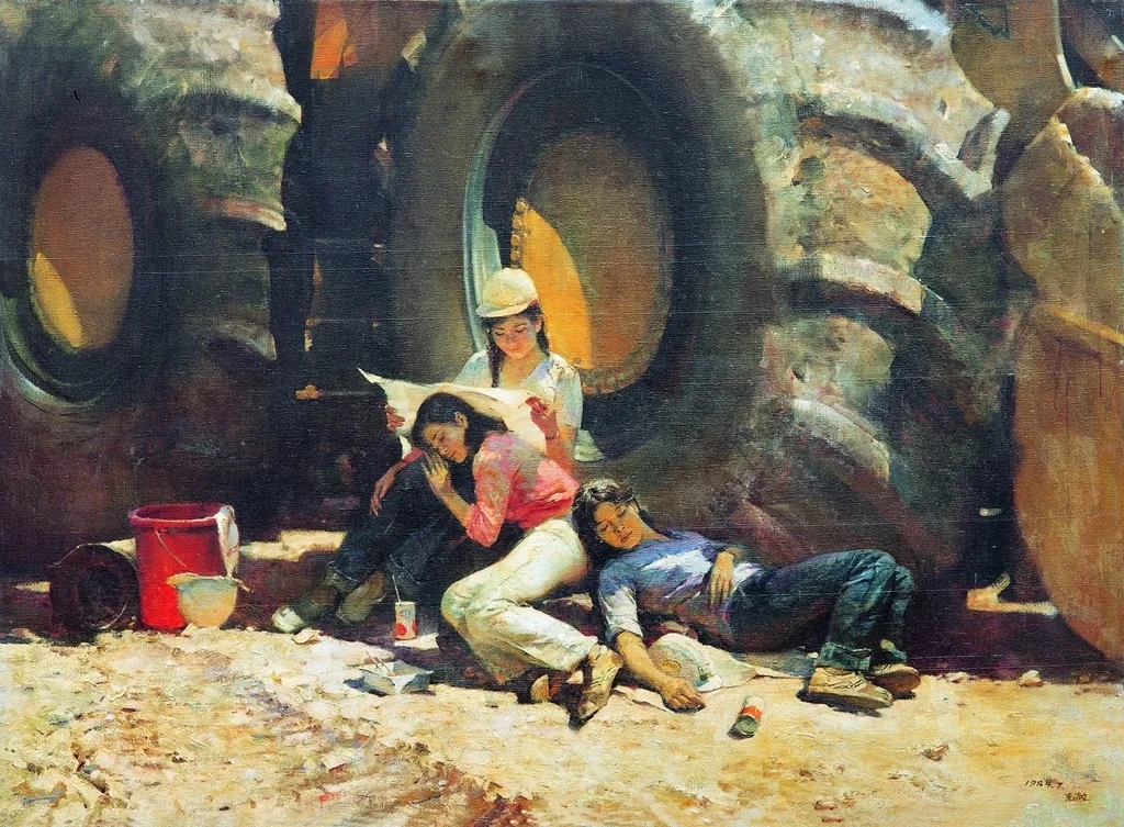 杨培钊认为:《特区(的)正午》是一幅颇为成功的作品。画面刻划的是三个青年女工午餐后休息时情景。一个在看报又担任着警戒任务,二个相互偎依的躺着,背景是一辆现代化的大型机车的轮胎,真大,大到三个人只比上它一只角。从这个局部的细节处理中,可以透见施工的现代化程度和规模。从人物形象,服装特征,阳光和色调中,可以透见典型的环境。三个女工形象塑造很成功,体态极美,动作也不矫揉做作。从形象、服饰、动作举止上能透见她们的文明程度和时代气息。她们热爱劳动,因为她们热爱无限美好的现实生活。他们的工作虽普通又平凡,即在平凡之中寓不平凡之意。美好生活的幸福大厦就是她们这些平凡的普通劳动者的双手建成的,她们无名,然而却是真正的英雄。特区的建设者,美好生活的缔造者们百忙之中的这一小息,又美,又有诗意。