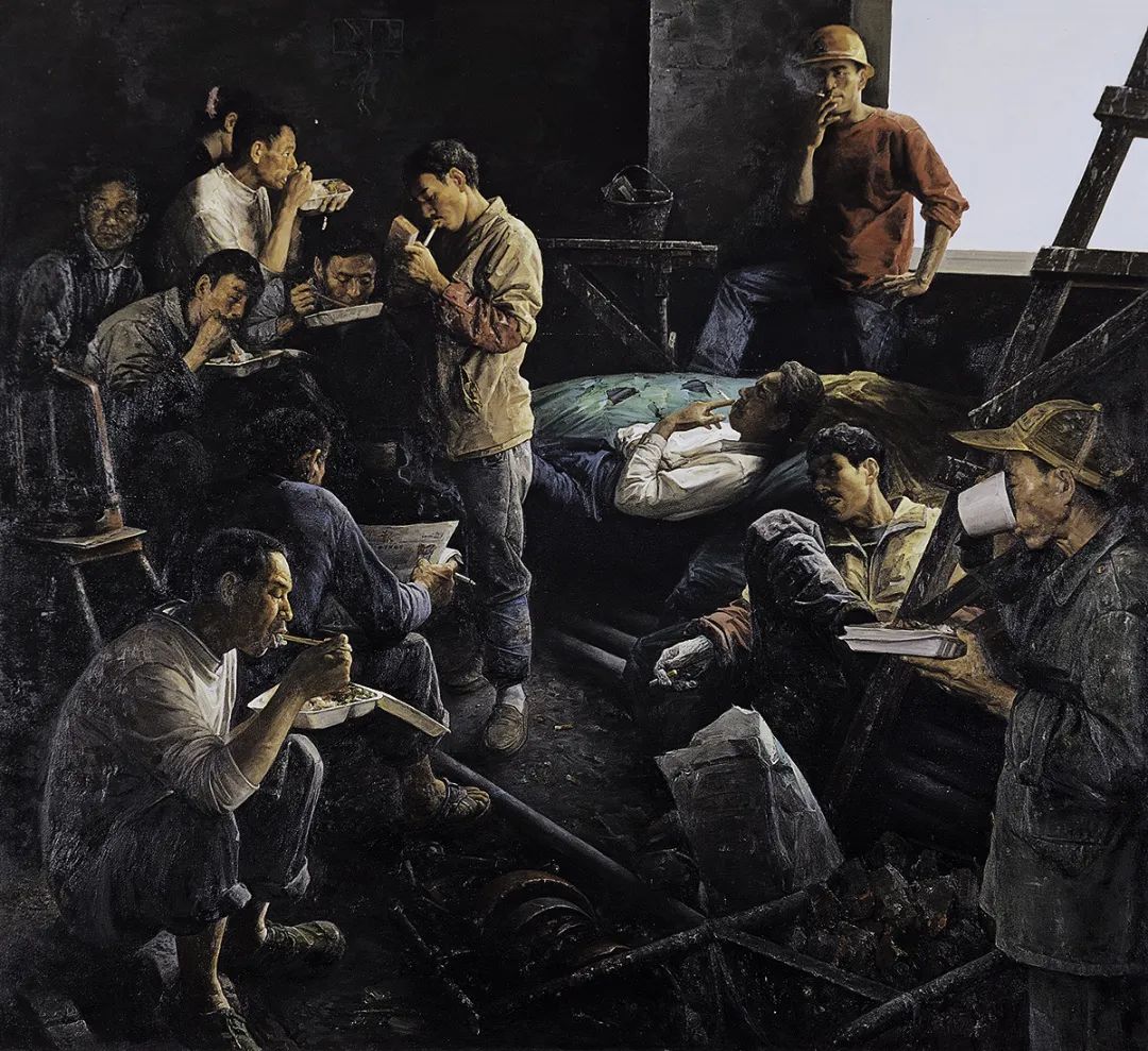 《赶工期》选取了一个建筑工地的场景。十几个姿态各异的农民工正在休息:有的吃完午餐正在看报,有的躺着享受这难得的余暇,有的则若有所思,仿佛在想念远方的家人。艺术家将一种强烈的社会责任感转化为对农民工这一特定时代背景下特定群体的生存状态及精神世界的深层次表述,并传达了对他们的关注和理解。从叶剑才的作品中可以感觉到一种让人难以释怀的乡情、乡音,既有远离故乡游子对家乡和亲人的怀念,更有对当今社会的密切关注和一种人文关怀。