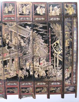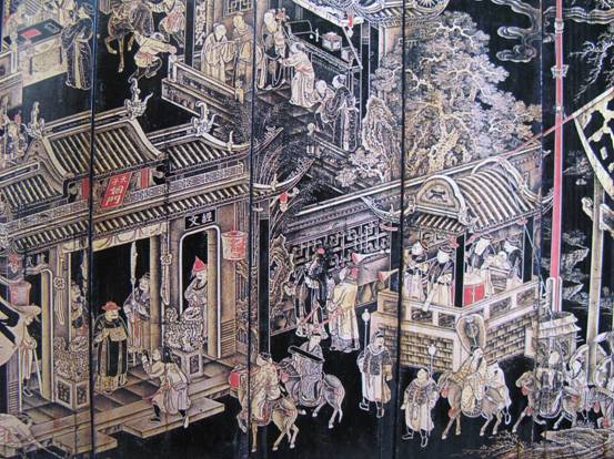图34:清乾隆金漆画小屏风 局部
