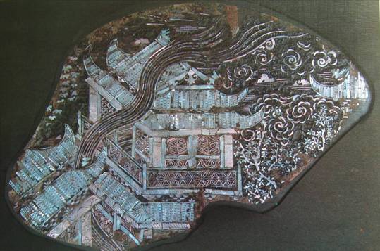 图28:元 广寒宫图嵌螺甸黑漆盘残片