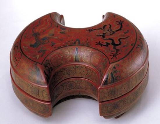 图26:明 彩漆戗金银锭式盒
