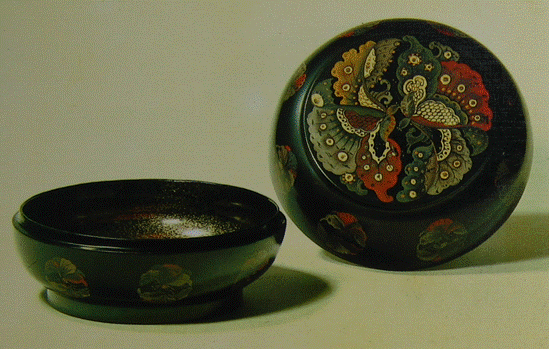 图31:清 蝶纹黑漆金理钩描油盒
