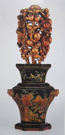图38:清 木雕龛前瓶花