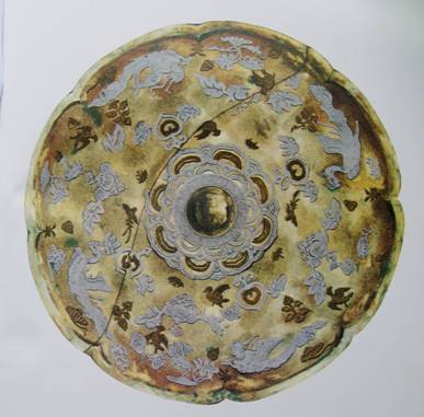 图16:唐 羽人飞凤花鸟纹金银平脱镜