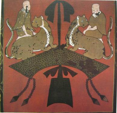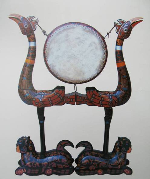 图6:战国 彩绘描漆虎座双鸟鼓摹本