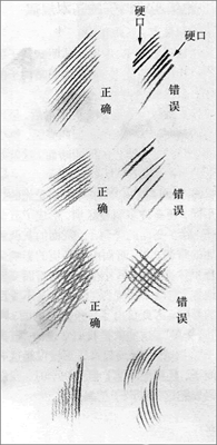 执笔法:画素描一般不用平常写字的执笔法,通常用铅笔不穿过虎口而置于掌下的横握的素描执笔方法,画出的线条平直、流畅,还由于腕力与肘力得到发挥,线条也显得格外有力。初学者开始时会不习惯这梓执笔,习惯了就会感到自然。