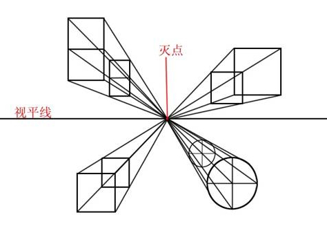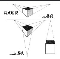 3. 线性透视:指近大远小的形状上面的变化。线性透视又分一点透视(又称平行透视),两点透视(又称成角透视)及三点透视三类。