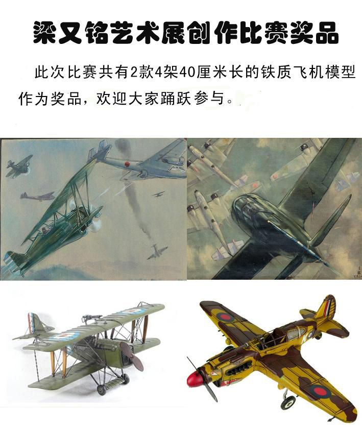 梁又铭作品观后感比赛奖品已经到啦。飞机完全铁质,40厘米长,仿真度非常高,都是当年抗战飞机,每台价值人民币300元。大家快来投稿哦,我们将会在豆瓣上发起投票,前4名将会获得飞机,快拉您的亲友团给您投票吧。