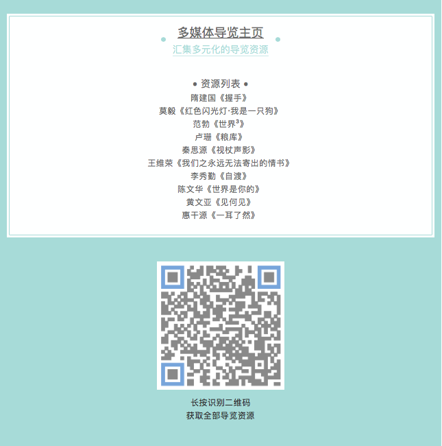 为了方便不能来现场的观众和视力障碍人士获取作品信息,我们制作了线上多媒体导览资源。除了图片、文字外,我们邀请策展人讲述策展理念,10位参展艺术家为公众“亲声讲述”自己的创作故事,以及推出了“边走边聊”的美术馆FM节目。部分作品还有小视频可供观赏。