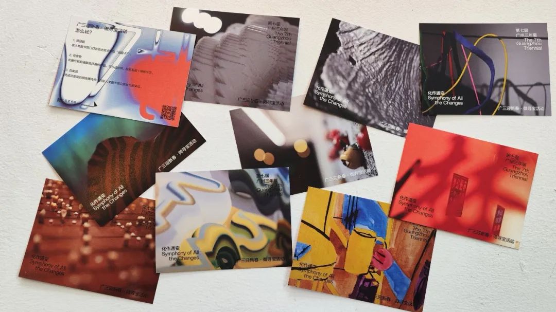 第七届广州三年展在2023年春节前开幕。在春节期间, 公共教育团队为观众策划了“微寻宝”活动,邀请观众根据“广三肌理”图片,寻找展出作品,发现艺术宝藏。此次活动以趣味形式,引发观展兴趣,深受观众喜爱,也为后续教育活动的开展做了铺垫。共有300人次参与此次活动。