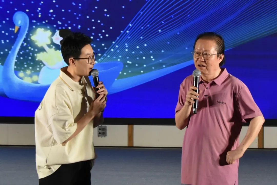 △分享会现场 △陈小奇(右)分享创作故事 △儿童表演
