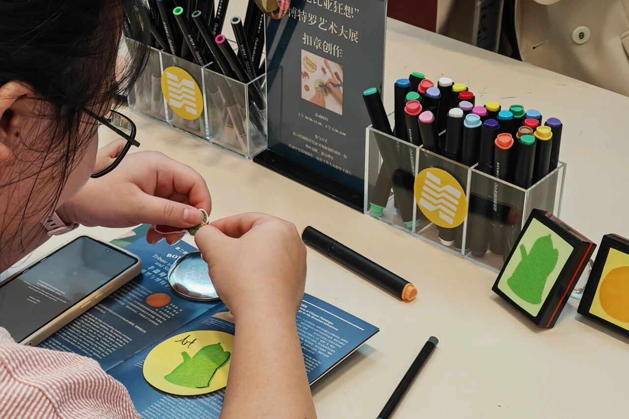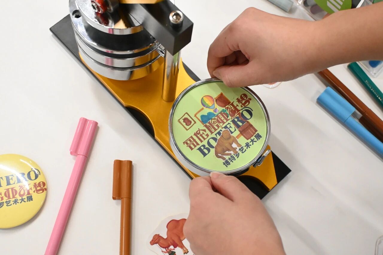 博特罗说:“我关注体积与形式的感性魅力。”在他的艺术世界里,一切都饱满、膨胀、丰盈,充满着欢愉与热情。“博特罗风格”可不仅仅是“发胖”而已。仔细观展的观众,自然会发现他隐藏在画中的创作秘密。为了让大家更直观地体验博特罗风格的形成方式,公共教育团队在“圆滚滚风格扣章创作”活动中,引导观众提取出“博特罗风格”的相关元素,总结与分析自己的观展感受,然后融入到一枚枚独一无二的圆形扣章的创作过程中。在12场扣章创作活动中,共投放了约400份材料包。每一枚扣章,都是对博特罗艺术奥秘的多样解答,承载的美学思考,也将跟随观众的脚步,从展览走向生活。