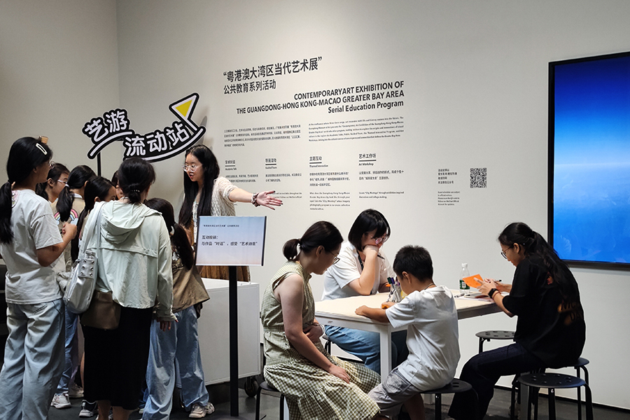“粤港澳大湾区当代艺术展”期间,公共教育团队推出多场公众导览活动,通过线上资源与线下导览相结合的方式,为观众构建了多维度的参观体验。