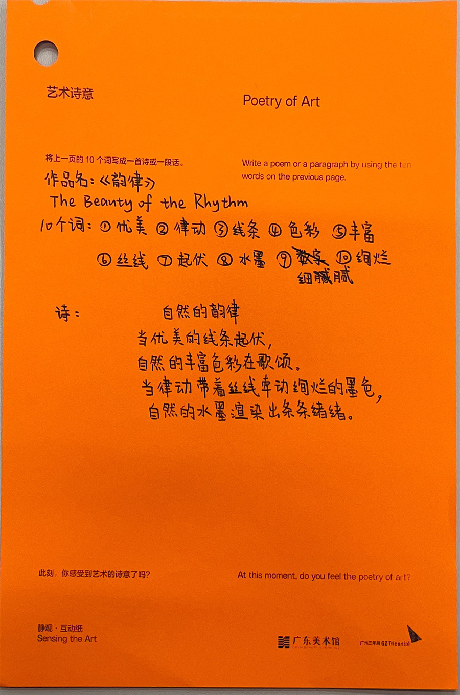 在活动中,许多观众为自己喜爱的作品写下真诚的留言;还有观众在展览中产生了强烈共鸣,通过“艺术诗意”互动游戏,创作出情感丰富、视角独特的短诗或散文。