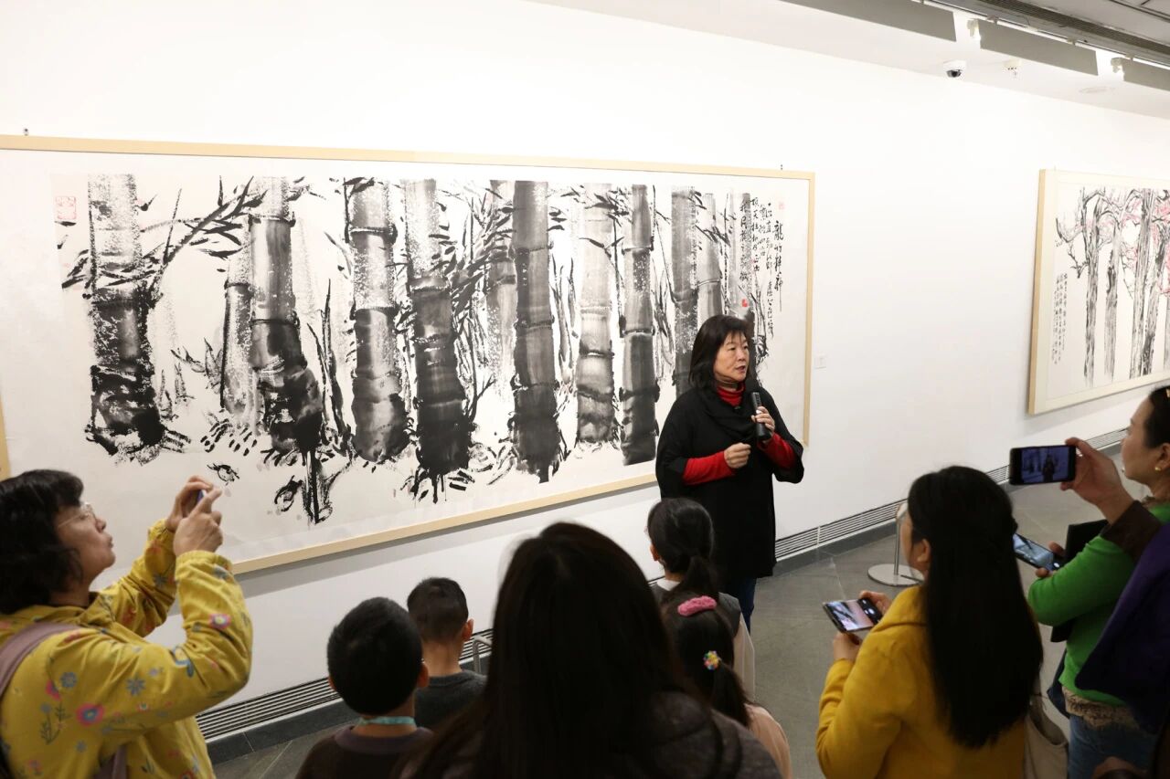 由艺术家家属锺琳女士亲授的“龙竹精神”亲子艺术工作坊充满了温情与文化传承的意味。锺琳引导亲子家庭观赏锺正山笔下的龙竹,并体验其独创的排笔画竹技法。她鼓励参与者“不要画得跟老师一模一样”,这种教学理念在节日活动中悄然传递了艺术创新的真谛——正如锺正山所说,艺术创作贵在“画出自己的风格”。家长与孩子共执画笔的场景,让美术馆成为跨代际审美启蒙的温暖课堂。