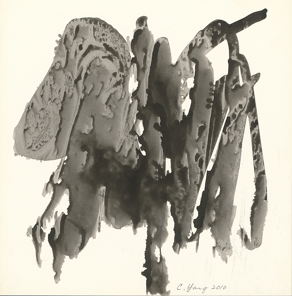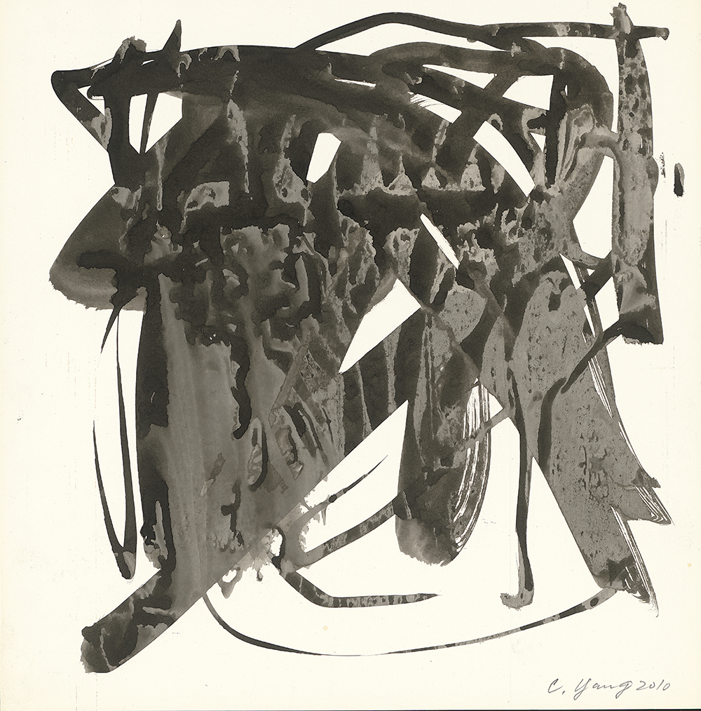 本次展出的三件小尺幅水墨纸本作品《无题》创作于2010年,如怀素之狂草,迅疾骇人,风驰电掣,一挥而就,可以感受到艺术家在创作时进入下意识、无意识或潜意识的忘我境界。