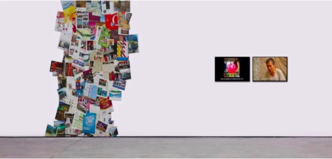 艺术家范勃一直关心的是如何在一个非视觉的系统里探讨艺术存在的可能性。《世界³》主要由收集而来的视障家庭日常生活的私人记录组成,诸如盲文书写的菜谱、歌词、地址、电话、诗歌等。而记录所用纸张来源于各种公共渠道的广告、杂志、图纸等现成印刷品。盲文信息和纸张本身的印刷内容分别属于剥离的两个系统,二者之间本无关联,两个世界的真实在此处交汇,却走向一个陌生化的现场。视频内容是视障人士与生活感受有关的访谈。
