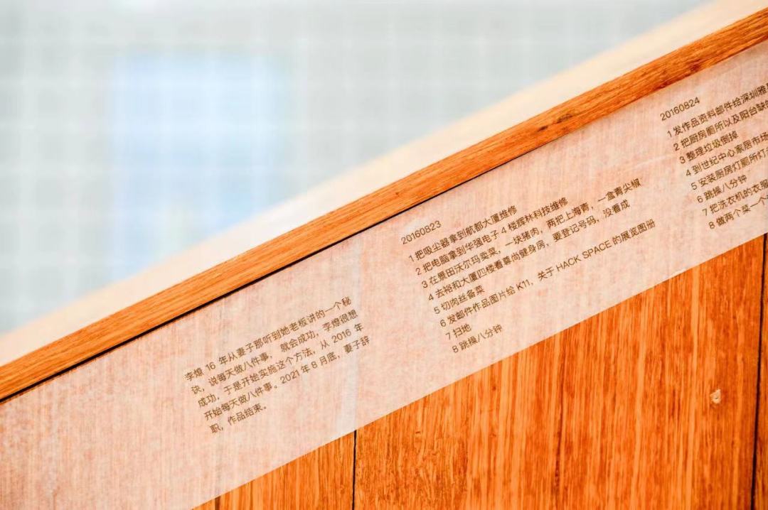 2016年从妻子那听到她当时老板讲的一个秘诀,说每天做八件事,就会成功。我很想成功,于是开始实施这个方法,从2016年开始每天做八件事。2021年8月底,妻子辞职,作品结束。