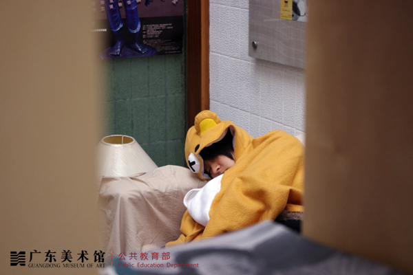 协助艺术家黄淋布展就是一个典型的例子。由于他的布展时间比较长,志愿者舒舒就一直跟着他。我在启动展的时候也是全程陪同一位艺术家的工作,深知这样的工作既充实又能锻炼一个人。一直跟着一个艺术家,就等于你见证了从开始的一堆原材料,到最后作品完成的整个过程。在当中所学到的总是出乎你的意料,与大家一起布展时的各种甜酸苦辣以及作品完成后的那种满足感也会一直保存在你的记忆深处。