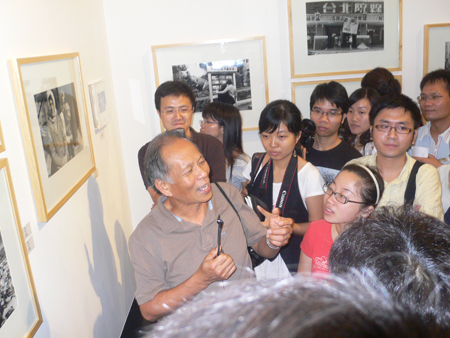 看到阮义忠先生本人的摄影作品,让我很兴奋,但最最让我兴奋的是,阮义忠先生亲自为我们导览,分享自己的摄影生涯。姗姗姐还交了个任务给我,要全程记下阮义忠先生的话,于是我在笔记本上狂草起来。一如我所料,阮义忠先生是个很平和,甚至有点孩子气的小老人,皮肤黝黑,一头灰发,但目光如炬,每每谈到摄影的时候,总会散发出一种原生态的自持之美。他以幽默的语调把自己的摄影人生娓娓道来。