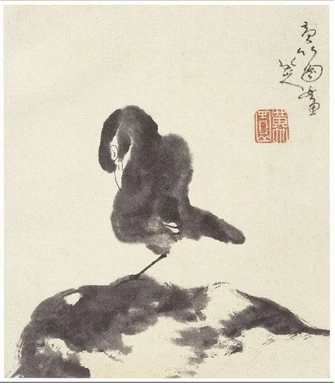 (清)八大山人《安晩册之七:鸟石》 现藏于日本泉屋博古馆
